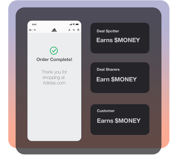 deal sharers who assisted in the sale, and the shopper. This will happen for hundreds of thousands (eventually millions) of sales per